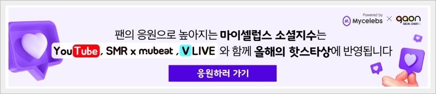 팬의 응원으로 높아지는 마이셀럽스 소셜지수 즉 익사이팅 디시 투표를 하면, YouTube, SMR x mubeat, V LIVE 와 함께 올해의 핫스타상에 반영되기 때문입니다.