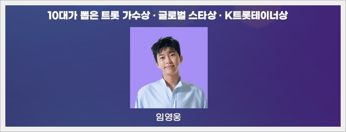 10대가 뽑은 트롯 가수상. 글로벌 스타상. K트롯테이너상은 히어로 임영웅이 수상하였습니다. 건행^^*