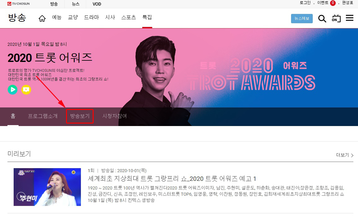 2020 트롯어워즈 재방송 시청 방법