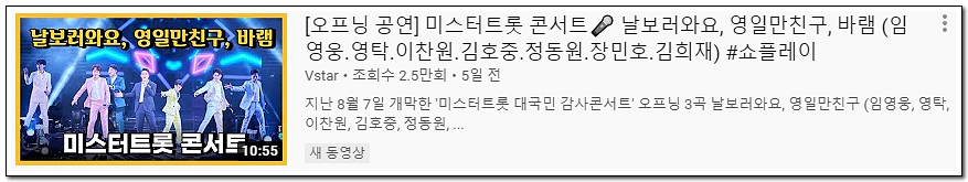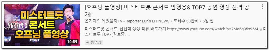 미스터트롯 콘서트 유튜브 공연 영상 링크