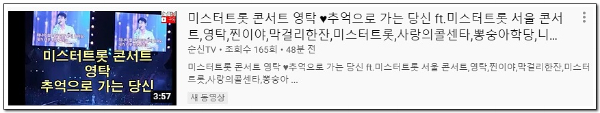 유튜브에 실시간으로 올라오는 미스터트롯 콘서트 영상들 입니다. 실시간으로 감상해 보시길요.