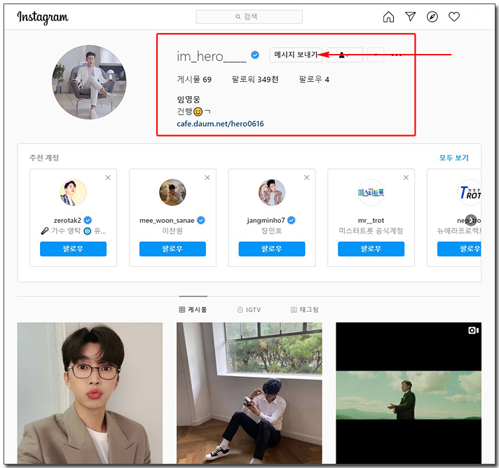 임영웅 인스타그램 팔로워 하는 방법