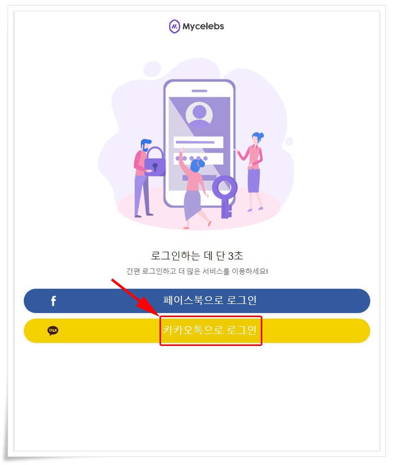카카오톡으로 로그인 하시면 자신의 카카오 아이디와 비밀번호 입력하신후, 로그인 누르시면 아래 가운데 마이셀럽스 전체동의하기 체크하신후 동의하고 계속하기 누르시면 됩니다. 아래 맨 오른쪽 이용약관에 동의하기 하신후 다음 누르시면 회원가입이 모두 끝난 겁니다. 카카오톡으로 마이셀럽스에 로그인 하신거라고 생각하시면 됩니다. 페이스북 아이디 가지고 계신분들은 페이스북으로 진행하셔도 동일합니다.