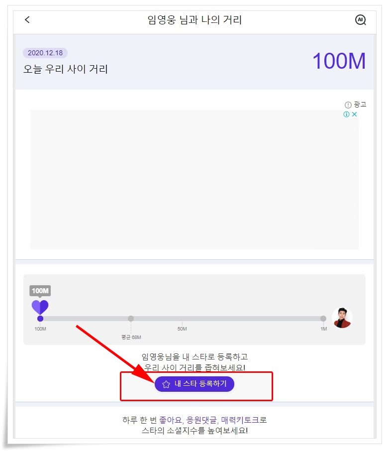 마이셀럽스 스타를 이야기 하기전에 먼저 가온차트에 대해서 먼저 설명을 드려야지만, 마이셀럽스 스타에 좋아요, 응원댓글을 달아야 하는 이유를 알려드릴수 있습니다. 한국음악콘텐츠협회(문화체육관광부)에서 빌보드 차트나 오리콘 차트처럼 우리나라에도 공인 음악차트가 필요하다는 공감대 아래 2년동안 준비해서 2010년 2월 23일 대한민국 공인 음악 차트를 출범하였습니다. 가온차트라고 명명했는데요. 가온이라는 말은 순 우리말로 가운데, 중심이라는 뜻을 가지고 있습니다. 가온차트는 가온디지털 차트, 가온 앨범 차트, 가온 리테일 앨범 차트, 가온 소셜 차트 2.0으로 나뉘어 집니다. 또한 가온 모바일 차트, 가온 BGM차트, 가온 노래방 차트가 존재합니다. 2013년 MBC 쇼! 음악중심과 SBS 인기가요(음원 및 음반), SBS MTV THE SHOW에서 가온차트를 기반으로 순위제에 반영되면서 가온차트의 인기도가 많이 높아졌습니다. 여기서 우리가 주목해야 할 부분은 바로 가온 소셜 차트 입니다. 쉽게 말하면 소셜의 인기도를 보는 겁니다. 소셜에서 얼마만큼의 인지도를 가지고 있는지를 보는 겁니다. 연말 시상식에 소셜 부문에서 많은 영향을 가지고 있는 겁니다. 지금 우리가 하고 있는 스밍이라던지, 뮤빗 등도 이와 같은 형태의 일원이라고 생각하시면 됩니다. 말이 조금 어렵기는 한데요. 아무튼 가온차트의 가온소셜차트의 순위를 올리려면 마이셀럽스 스타로 들어가셔서 자신이 좋아하는 스타에게 좋아요! 와 응원댓글과 을 남기시면 된다는 이야기 입니다. 조금 더 부가하면 임영웅 이름으로 집계되는 소셜 지수라고 생각하시면 됩니다. 매일 좋아요! 하고 응원댓글 남기고 그리고 매력 키토크도 남겨주시면 아주 좋습니다.