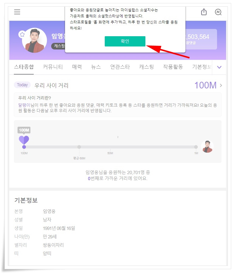 마이셀럽스 스타 좋아요, 응원댓글 남기는 방법(feat:가온차트)