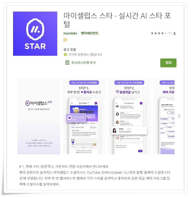 마이셀럽스 스타 홈페이지 앱 다운로드 바로가기