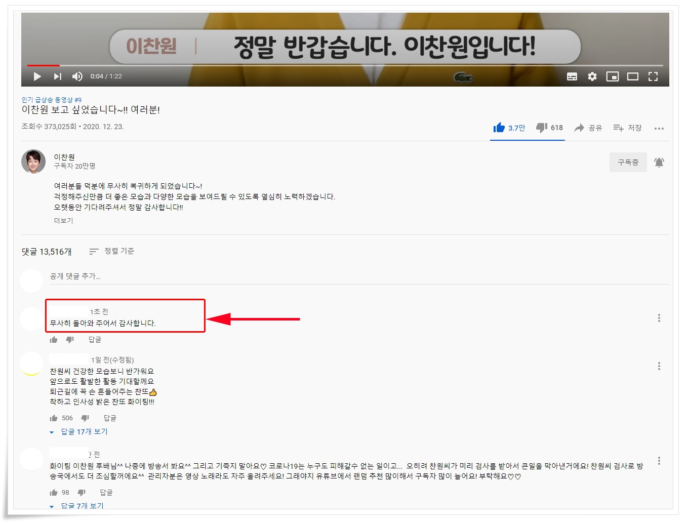 애정어린 하트와 구독과 좋아요. 다음 영상도 기대해 주세요. 라고 2020년 12월 1일 그의 첫방송은 막을 내렸습니다. 정말이지 찬또배기 다운 영상인것 같습니다. 구독과 좋아요. 그리고 알람설정, 댓글 다는 방법은 아래에서 하나 하나 살펴보겠습니다.