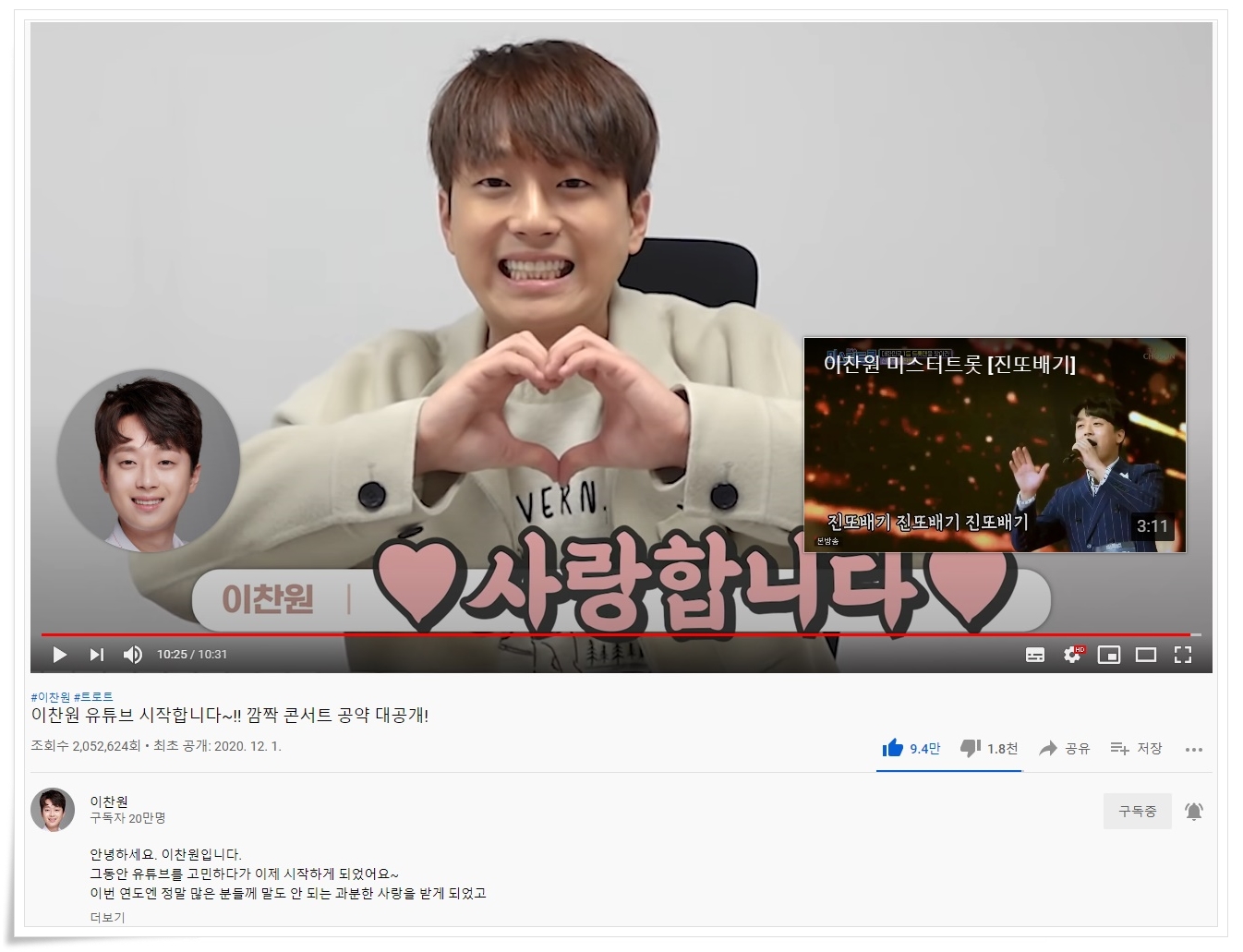 이찬원 유튜브 공식 채널을 가입해야 하는 이유