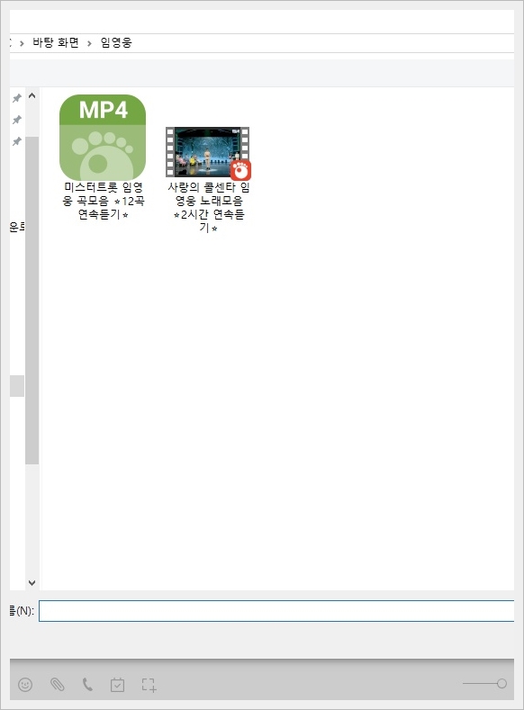 보이시지요. 저는 이미 장모님에게 히어로 임영웅 노래모음을 많이도 보내드렸습니다. 어찌나 좋아하시던지요. 그래서 제가 지금 이 포스팅도 쓰고 있는겁니다.^^* 이런게 모라고 많이 좋아하시니 앞으로 더 많이 보내드려야 겠습니다. 위에서도 잠깐 언급했지만, 카카오톡으로 전송하실때 용량은 300M를 넘으면 안됩니다. 물론 최고 고화질이 좋기는 하겠지만 720p의 고화질이라도 크게 차이는 없습니다. 어차피 핸드폰에서 보는 거라면 720p의 크기라도 충분히 고화질로 감상하실수 있습니다.