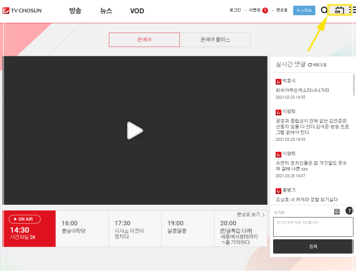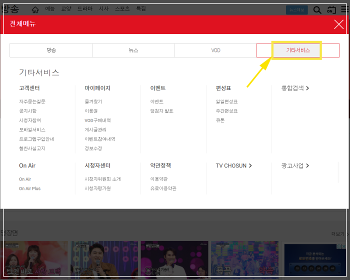 tv조선 온에어로 편성표 가는 방법