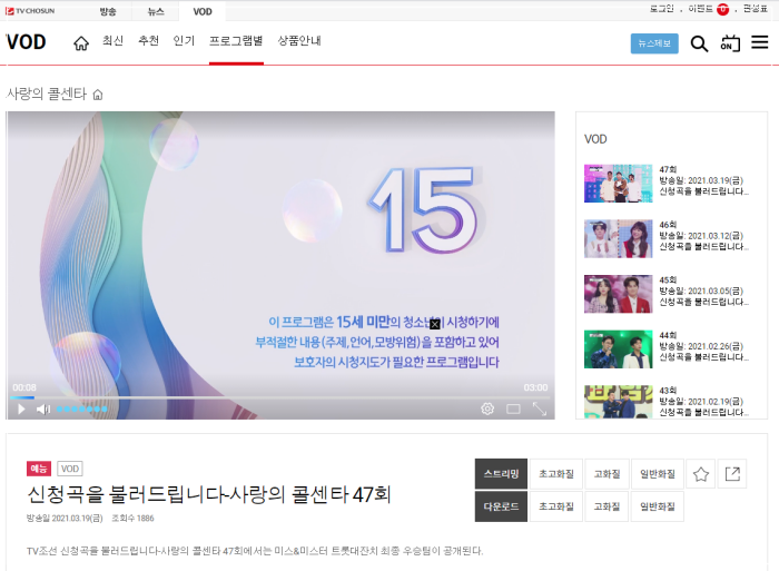 신청곡을 불러드립니다. 사랑의콜센터 47회 다시보기로 들어가시면 이렇게 시작이 됩니다.