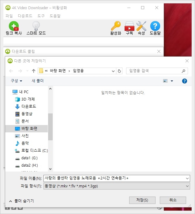 저희 장모님께서 히어로 임영웅의 찐팬중에 찐팬입니다. 정말이지 하루종일 임영웅 노래만 틀어놓고 사십니다. TV에서는 물론이고요. 하루종일 TV조선 재방송을 꿰고 사십니다. 케이블채널에서 임영웅 노래소리만 흘러나와도 다른걸 모든걸 접으시고, 노래만 하루종일 반복 재생하고 계십니다. 지난번에는 히어로 임영웅의 커피 광고에 나온 노래를 다운로드 받아달라고 해서 제가 잘 받아드렸습니다. 이번에는 핸드폰으로 임영웅 유트브에 나온 모든 노래를 무한반복 듣고 싶으신가 봅니다. 제가 친절하게 열심히 유튜브에서 임영웅 노래를 다운로드 해서 카카오톡으로 많이 보내드렸습니다. 그러고 보니, 이건 저만 이런게 아닐거라는 생각에 아주 자세하게 히어로 임영웅 유튜브 노래 다운로드 하는 방법에 대해서 알려드리겠습니다. 안드로이드폰, 즉 삼성폰에서는 유튜브 다운로드 하는 어플들이 많이 존재하는데요. 저는 아이폰을 사용하고 있기 때문에 아이폰에서 유튜브 다운로드 하는 어플은 사실상 없다고 생각하시면 됩니다. 존재하기는 한데, 제가 한번 사용해보려다가 짜증나서 그냥 제 컴퓨터에서 프로그램 하나 다운로드 받아서 카카오톡으로 잘 보내드렸습니다. 어렵지 않으니까 아래 내용 보시고 꼭 이렇게 하시길요. 가장 쉽고 빠른 유튜브 동영상 다운로드 하는 방법입니다. 지금부터 시작해 보겠습니다. 장모님에게 보내드린 임영웅 노래모음은 아래 있습니다.
