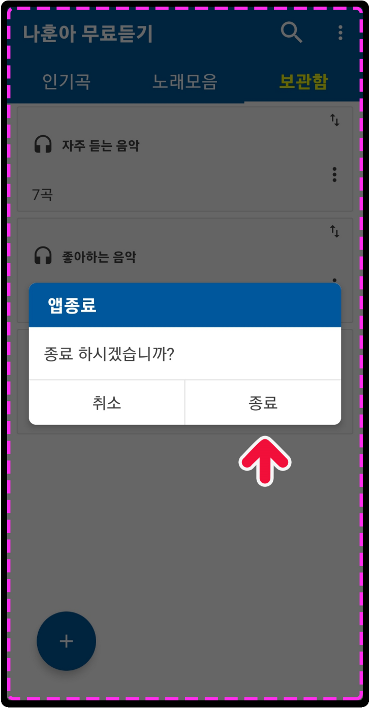위에서 알려드린 나훈아 노래모음 앱 설치 바로가기를 따라서 앱을 설치하시면 인기곡, 노래모음, 보관함의 메뉴가 있는 화면이 나옵니다. 여기에서 우선 자신이 원하시는 곡을 선택하시면 아래 왼쪽 이미지처럼 팝업창이 하나 나옵니다. 유튜브 재생 정책으로 인해 화면이 꺼지면 재생이 중단됩니다. 정책상 문제이니 양해 바랍니다.라는 문구가 나옵니다. 확인 누르시면 화면 상단에서 영상과 함께 노래를 들으실 수 있습니다.
