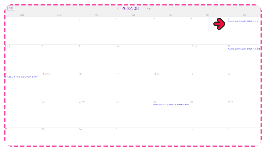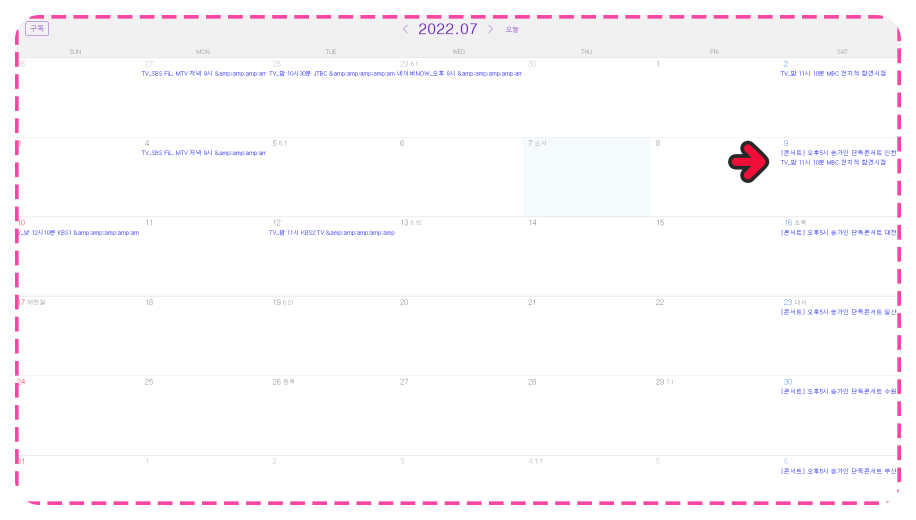 또한 송가인 님의 스케줄 또한 함께 확인하실 수 있습니다. 많은 메뉴들이 있지만, 제가 손꼽는 이유는 바로 이것입니다.