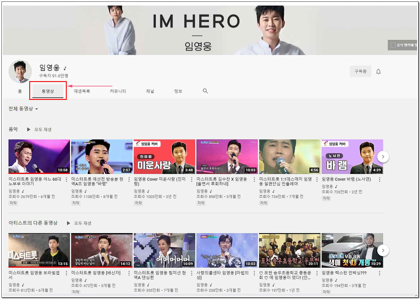 ✔️ 임영웅 공식 유튜브에서 동영상 보는 TIP